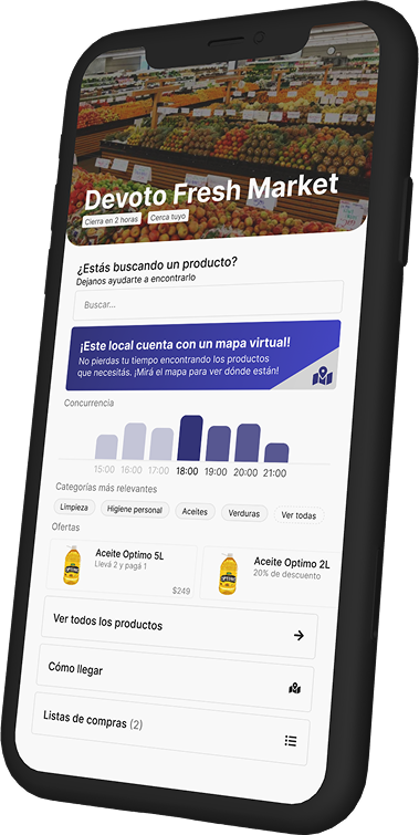 ¡Hacé tus compras más rápidas y fáciles! Con nuestra app, podés encontrar los productos de los supermercados afiliados y su ubicación exacta en el establecimiento, todo desde tu celular. ¡Olvidate de perder tiempo buscando y encontrá lo que necesitás en segundos!
